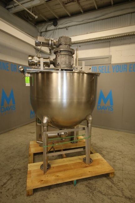 Groen 300 Gal. S/S Kettle, Model NEM 300 SP, S/N 123801, 316 S/S, with Double Motion Scrape Surface Agitation, (1) 3 hp / 1760 rpm & (1) Aprox. 2 hp / 1725 rpm, 230/460V, S/S Legs, Safety Guard with Hinged Lid, Bottom Air Valve with 4” CT Connection (INV#108938) (Located @ the MDG Auction Showroom in Pgh., PA) (Skidding, Loading, Handling and Site Management Fee $300)