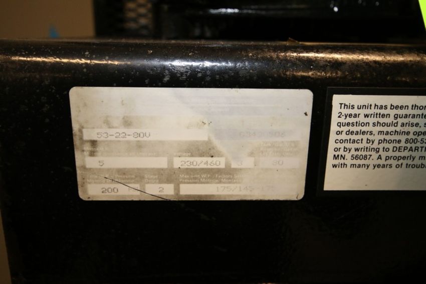 Sanborn 5 hp Recip. Air Compressor, Model 53-22-80V, with Vertical Tank, 230/460V (Note: Coil & Filter Housing are Broken see Photos) (INV#109016) (Located @ the MDG Auction Showroom in Pgh., PA) (Skidding, Loading, Handling and Site Management Fee $150)