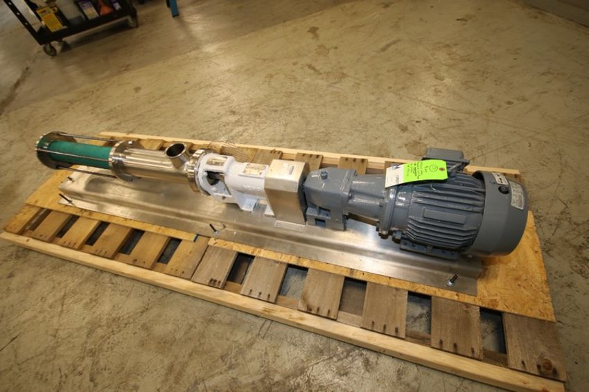 Netzsch Nemo Progressive Cavity Pump, Model NMSH, Size 045 02S, Type MN045SY, SN 15452, with 3” CT Head, Toshiba 5 hp / 3600 rpm Drive Motor, 460V, Mounted on S/S Frame (INV#109097) (Located @ the MDG Auction Showroom in Pgh., PA) (Skidding, Loading, Handling and Site Management Fee $250)