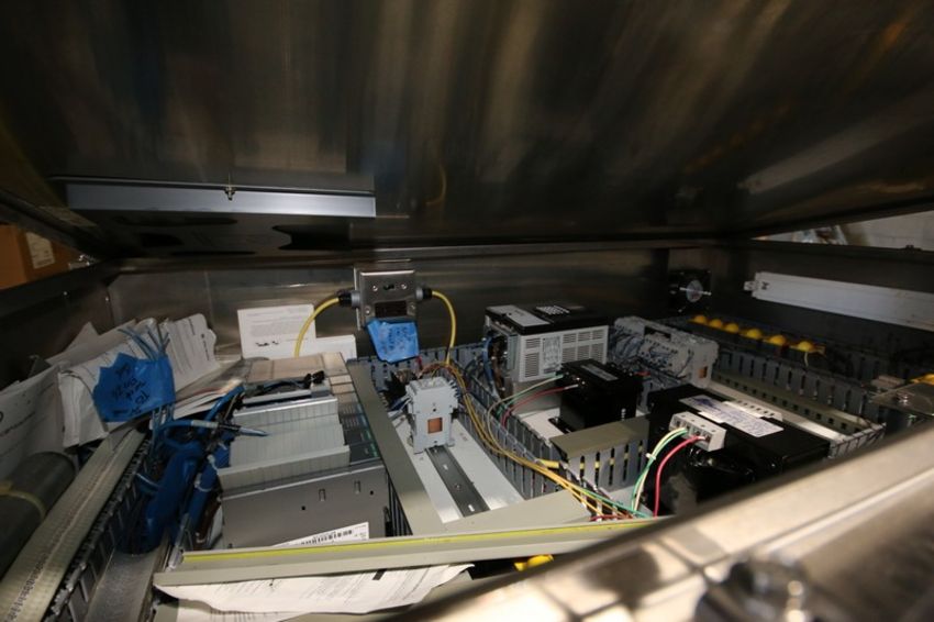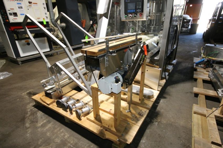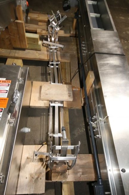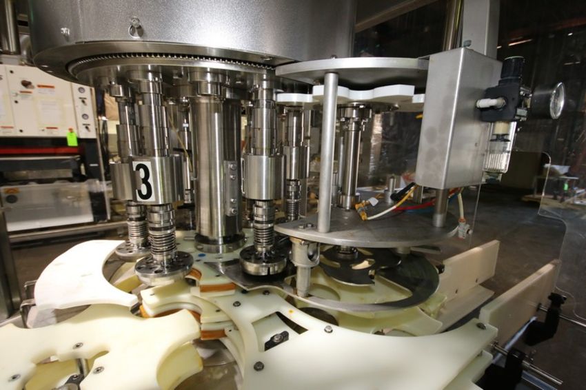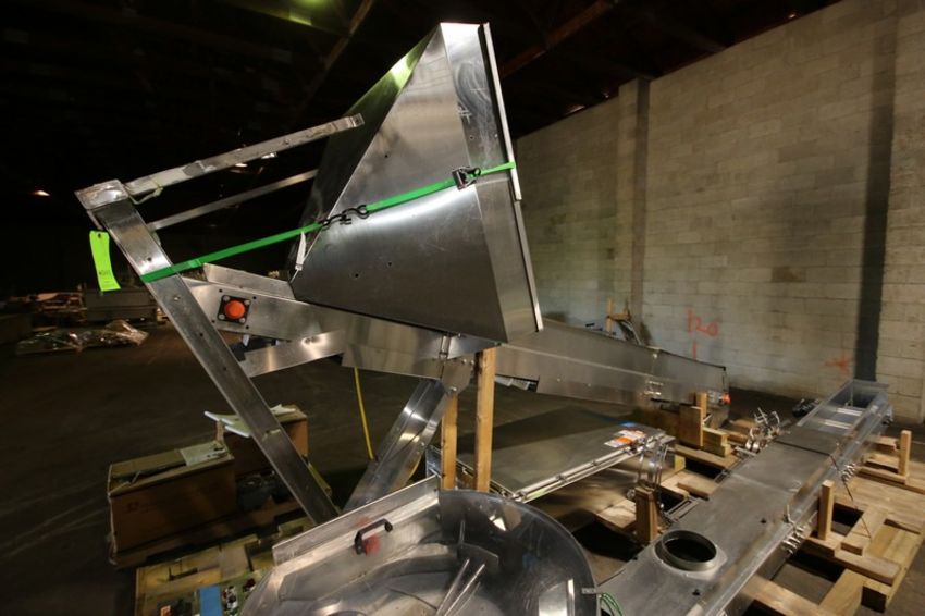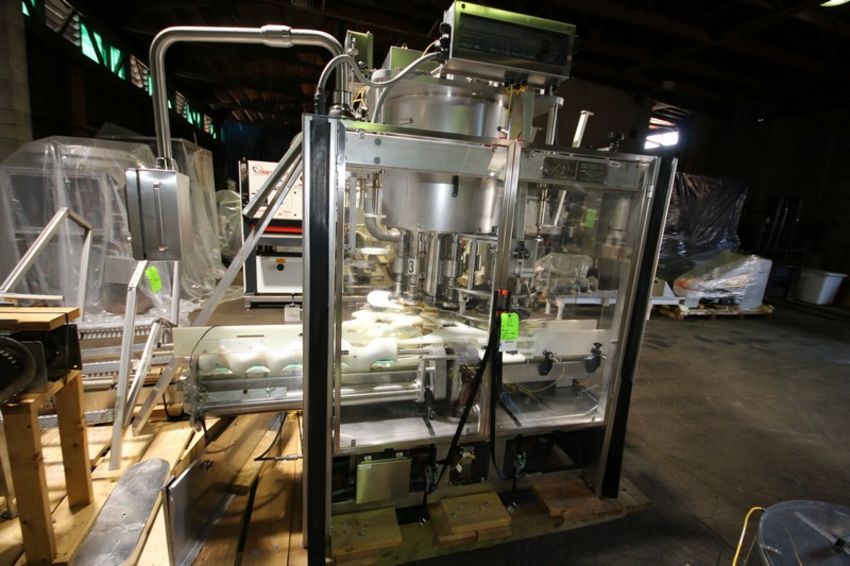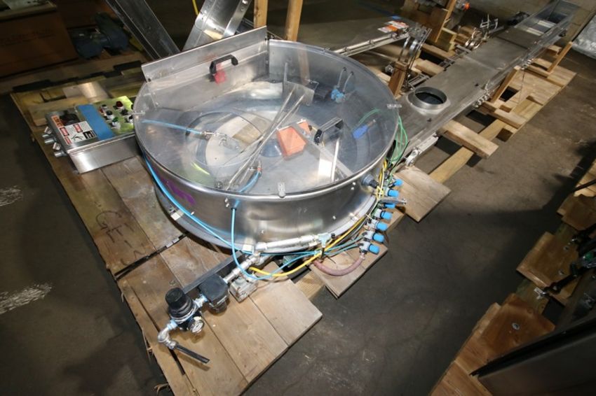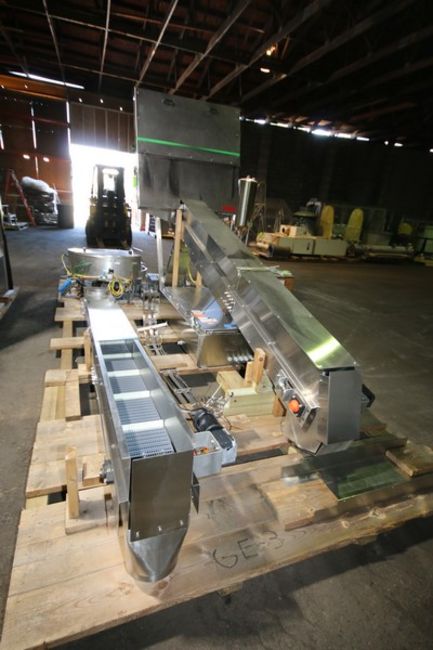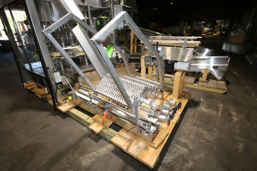 Fowler Zalkin 6 - Station Rotary Capper, Mach. Type CAS-6 / 480, SN 20022117 F/Z 1143, Set up with 4 1/6” Chucks with 110 m / Gallon Change Parts, 8” W Infeed / Outfeed Conveyor, Includes 40” W Vibratory Feeder with Feed Rail, Aprox. 15 ft H Inclined Feed Hopper with 8” W Conveyor, 48” L x 48” W x 32” D Hopper, 11 ft L x 8” W Feed Conveyor, Includes S/S Control Panel with Allen Bradley 5/04 PLC Controller with Panelview 550 Display, Powerflex 70 VFD, 480V, Includes Some Spare Parts, (Built 2003) (INV#88446)(Located @ the MDG Auction Showroom in Pgh., PA)(Handling, Loading & Site Management Fee: $2,200)