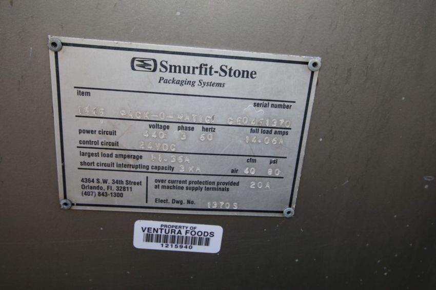 Smurfit - Stone Case Erector, Type 1515 Pack-O-Matic, SN CEO4E1370, with Allen Bradley Micrologix 1500 PLC Controller, 440V, (mfg 2009), (M153) (INV#109088) (Located @ the MDG Auction Showroom in Pgh., PA) (Skidding, Loading, Handling and Site Management Fee $500)