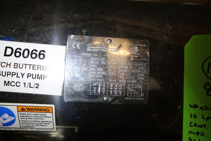 Waukesha / CB 10 hp / 3490 rpm Centrifugal Pump, Model C216, SN 364657-04, with 2” x 1.5” CT S/S Head, Sterling S/S Motor, 208-230/460V (INV#109105) (Located @ the MDG Auction Showroom in Pgh., PA) (Skidding, Loading, Handling and Site Management Fee $300)