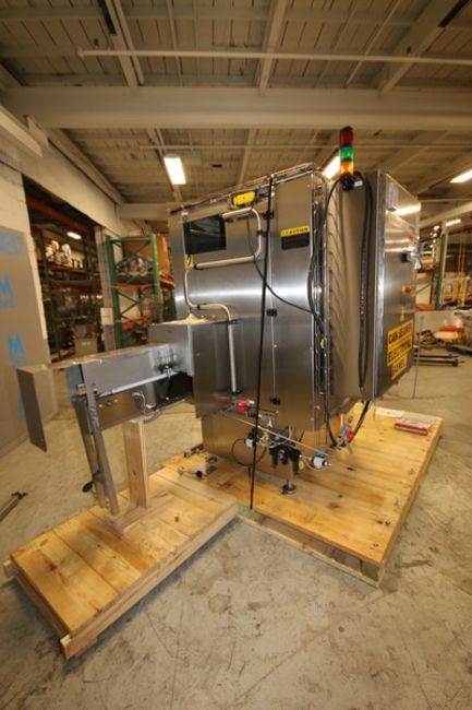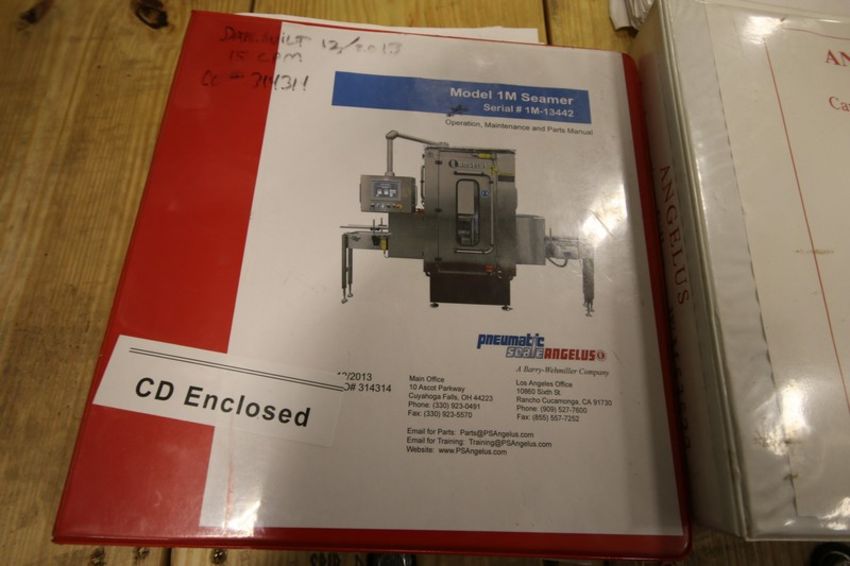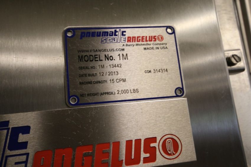 2013 Pneumatic Scale Angelus Rotary Can Seamer, Model 1M, SN 1M-13442, with On Board Control Panel, with Allen-Bradley Control Logix PLC Controller, with Panelview Plus 1000 Touch Pad Display, (2) Power Flex 753 VFDs, 3.25" W Infeed/Outfeed Conveyor, 15 cpm Capacity, Set Up with 202 Diameter Can Change Parts (INV#107668) (Located @ the MDG Auction Showroom in Pgh., PA) (Skidding, Handling, Loading & Site Management Fee: $2,500)