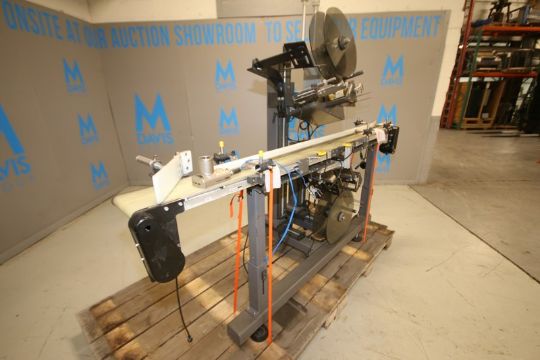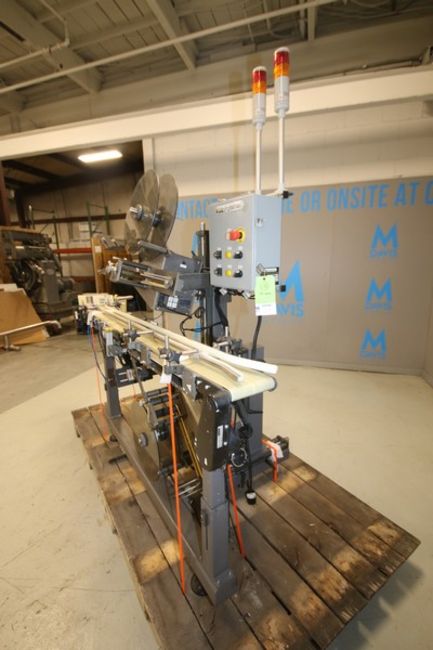 Code-In-Motion / Versapply In-Line Labeler, Model 1022-06040603, SN S130075-1, with (2) Heads Models VA9100L & R-40PK, SN S130075-2 & 3, with (2) Banner Cameras & 7' L x 6" W x 40" H Conveyor, 120V(INV#89048) (Located @ the MDG Showroom in Pgh., PA) (Skidding, Rigging, Loading & Site Management Fee: $200 USD)