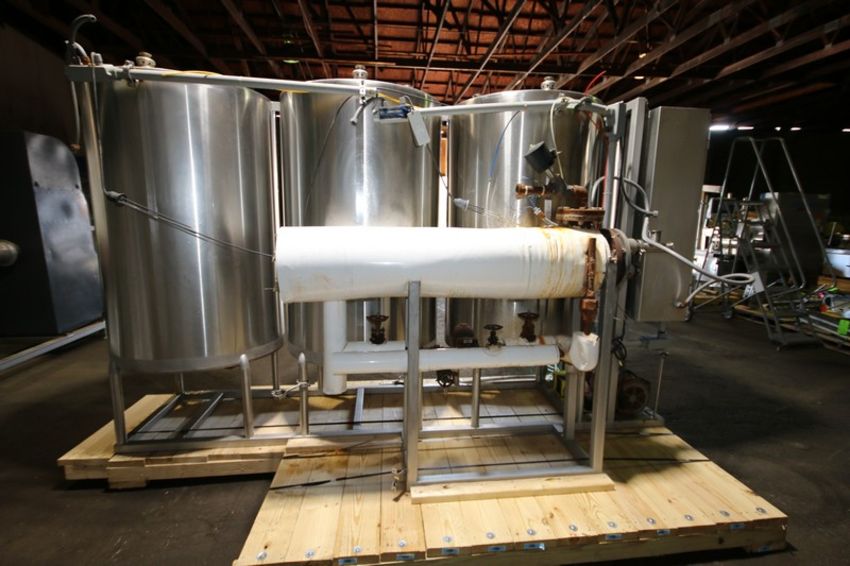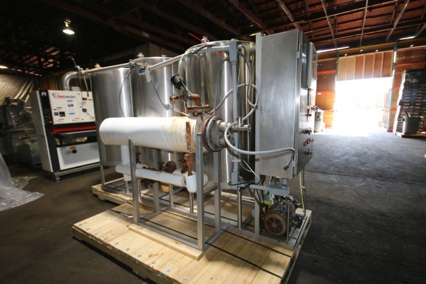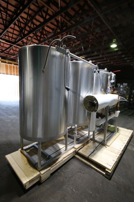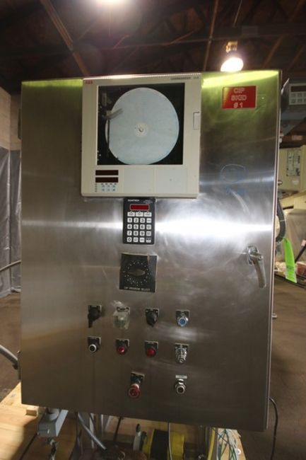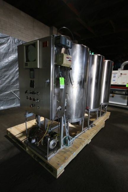 Sani Matic 3 - Tank Skid Mounted S/S CIP System, Model SMS 3 Tank CIP, SMS #3258-90, Item #02-50-9901, with 60” H x 36” W (Aprox. 250 Gal) S/S Tanks, with B & G 5 ft L x 10” W Shell & Tube Heat Exchanger, Tri Clover Aprox. 5 hp Centrifugal Pump, Allen Bradley 1771 2/16 PLC Controls, ABB Commander 1900 Digital Chart Recorder & Chemical Pump,(INV#109089) (Located @ the MDG Auction Showroom in Pgh., PA) (Skidding, Loading, Handling and Site Management Fee $1,200)