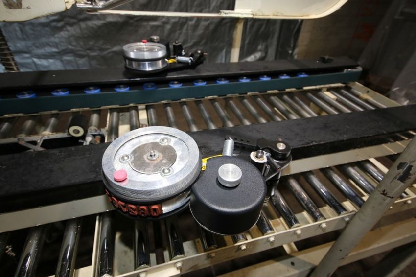 Abal Adjustable Case Sealer, Model 100-5, SN 1223, with Top & Bottom Cartridges & (2) On-Board Coders, 110V (INV#108993) (Located @ the MDG Auction Showroom in Pgh., PA) (Skidding, Loading, Handling and Site Management Fee $100)
