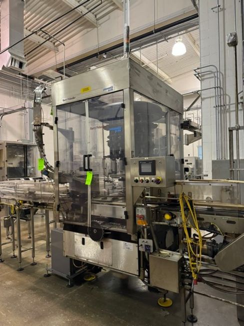 Barry-Wehmiller 12-Head Capper, M/N 12 HDB PNEUMAPLUGGER, S/N 3365S-24198, 300 CPM, with Infeed Chute & Stand, 460 Volts, 3 Phase, with Single Door Control Panel, with Allen-Bradley 10-Slot PLC & (1) Allen-Bradley PowerFlex 4 VFD & Other Electrical Components (SOLD SUBJECT TO CONFIRMATION) RIGGING, LOADING, & SITE MANAGEMENT FEE: $975.00 USD)(LOCATED IN WAVERLY, IA)