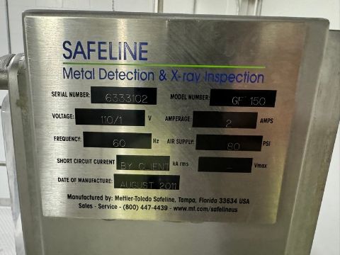 2011 Mettler Toledo Safeline Flow Thru S/S Metal Detector, M/N GF 150, S/N 6333102, with Digital Display (SOLD SUBJECT TO CONFIRMATION)v(RIGGING, LOADING, & SITE MANAGEMENT FEE: $500.00 USD)(LOCATED IN WAVERLY, IA)