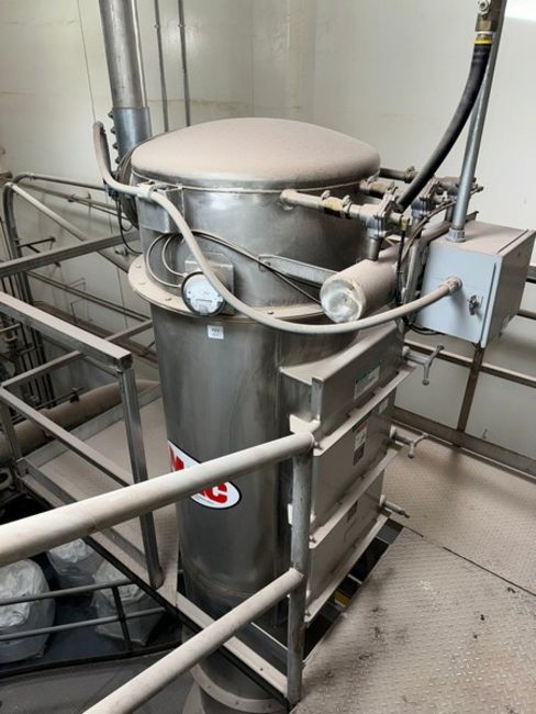MAC Equipment Inc. S/S Work Bin, Item No. 6-05.2, Dims. 5 x 5, with Top Mounted MAC Bag House (SOLD SUBJECT TO CONFIRMATION) RIGGING, LOADING, & SITE MANAGEMENT FEE: $500.00 USD)(LOCATED IN WAVERLY, IA)