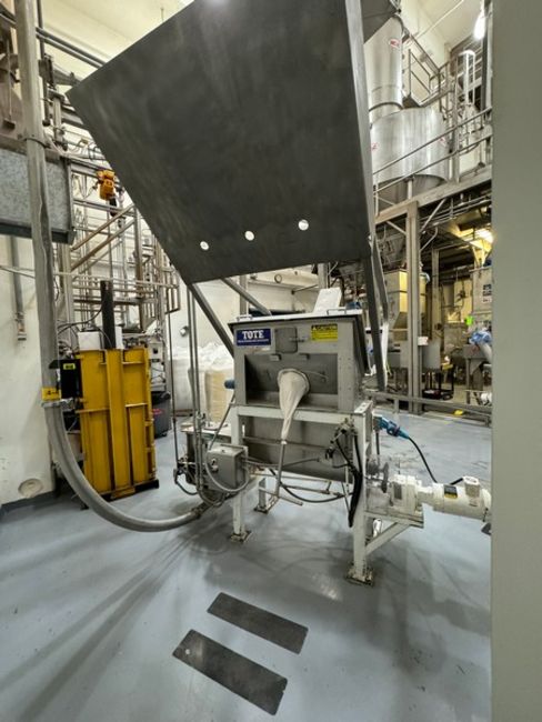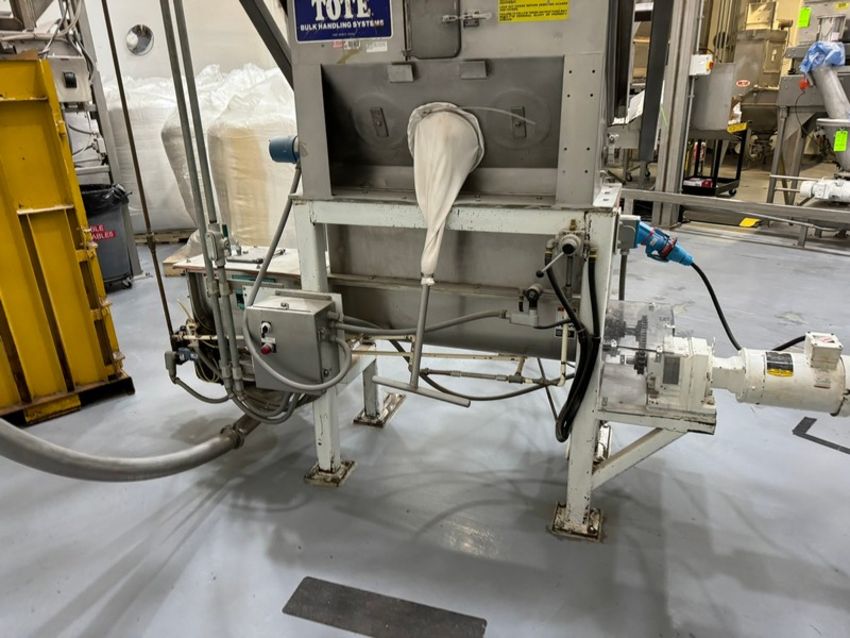 Tote Bulk Handling Systems, Tote Tilt Station with S/S Auger Transfer, Mounted on Mild Steel Frame (SOLD SUBJECT TO CONFIRMATION) RIGGING, LOADING, & SITE MANAGEMENT FEE:  $850.00 USD)(LOCATED IN WAVERLY, IA)