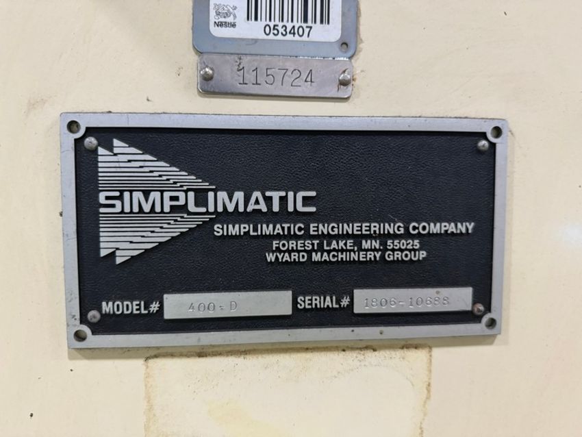 Simplimatic Engineering Company Depalletizer, M/N 400-D, S/N 1806-10688, with 2-Door Control Panel with Controls (SOLD SUBJECT TO CONFIRMATION) RIGGING, LOADING, & SITE MANAGEMENT FEE:  $3,000.00 USD)(LOCATED IN WAVERLY, IA)