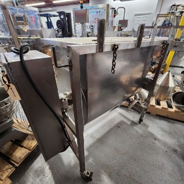 Paddle Mixer With security guard and sensors 3 inch. Bottom discharge. 13 cf. 208 volts, 3 ph, 9 amps. All in stanless steel, on casters. Food grade. (Inv. #102H) (Loading fee $250) (Located Huntingdon, Quebec, Canada)