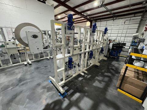 2022 KYD Automatic 4,000 Units Per Hour Mask Manufacturing Line, Includes Unwinding Station, Rolling ; Assembly Station, with Ultra Sonic Welding ; Cutting Dies, 220 Volts/60 HZ,with Attached Ink Jet System with Touchscreen Display (LOCATED IN MOUNT HOME, AR)