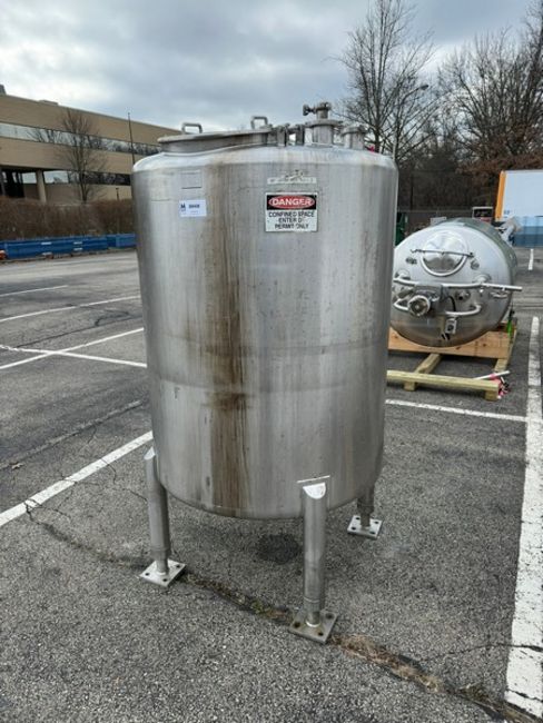 Scott Turbon 250 Gal. S/S Mix Tank, S/N 5319, with Dish Bottom, with Top Man Door, with Aprox. 3” Clamp Type Bottom Discharge, Mounted on S/S Legs (NOTE: Needs Agitation & Agitation Motor; Agitation Motor Aprox. 12” Dia.) (INV#88408)(Located @ the MDG Auction Showroom 2.0 in Monroeville, PA)(Handling, Loading & Site Management Fee: $250.00 USD)
