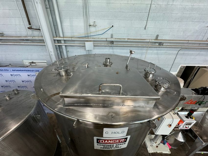 Walker 600 Gal. S/S Single Wall Tank, M/N CB, S/N 4228, 304 SS, with Cone Bottom, with Aprox. 3" Clamp Type Outlet, Mounted on S/S Frame (INV#88419)(Located @ the MDG Auction Showroom 2.0 in Monroeville, PA)(Handling, Loading & Site Management Fee: $500.00 USD)