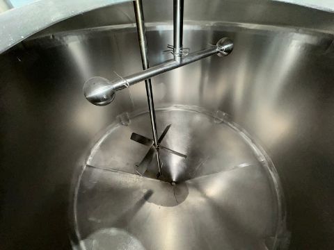 Aprox. 500 Gal. S/S Single Wall Mixing Tank, Vessel Dims.: Aprox. 36" H x 36" Dia., with Dome Top, with S/S Cone Bottom, with Aprox. 2" Clamp Type Discharge, with Top Mounted Agitation Motor, with Quad Prop S/S Vertical Agitation, with Dual S/S CIP Spray Balls, Mounted on S/S Frame (INV#88415)(Located @ the MDG Auction Showroom 2.0 in Monroeville, PA)(Handling, Loading & Site Management Fee: $1,000.00 USD)
