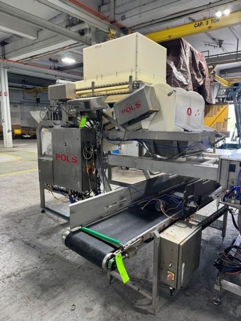 POLS Dual Lane Flow Portioner, with Dual Conveying Lanes with Aprox. 13-3/4" L Cleats, with Load Cells with Digital Read Out, with Straight Section of Outfeed Conveyor, Aprox. 102" L with Aprox. 15-1/2" W Belt (RIGGING, LOADING, & SITE MANAGEMENT FEE: $500.00 USD) (LOCATED IN GLOUCESTER, MA)