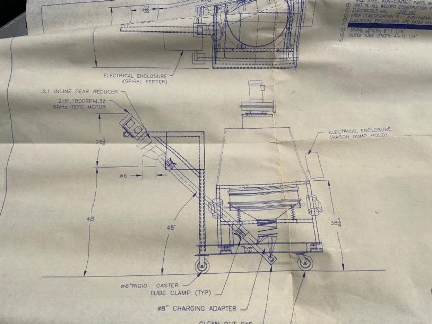 Kason S/S Bag Break, Model KBDS30/316SS, S/N M-7935, Job #K-89323 with 30" Screener and Screw Feeder, Mfg. 07/2088, 316 S/S, Complete with All Controls with Screener and Feeder; Explosion Proof Controls for the Bag Break Station, 3" S/S Screw Feeder from Screener to Discharge at 48", System is all portable on a common base. System last used in a protein plant. This has all the bells and whistles and the system is very expensive and won't last long at this price. (Crating and Loading Fee $500 to Ship Common Carrier) Please inquire for Shipping Rates (Located Winter, WI)