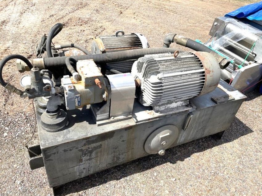 Twin Drive Hydraulic Power Pack with Aprox. 150 Gal. Tank, 20 hp Drive with Hydreco Pump; 25 hp Drive with OilgearPump. This unit was last used in the food industry (Crate Fee $300 to Ship Common Carrier) (Please inquire for shipping rates) (Located Winter, WI)