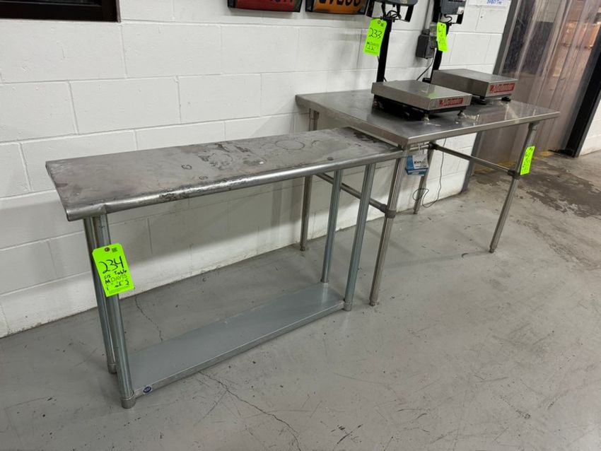 (2) S/S Tables, 1-Aprox. 48" L x 30" W x 36" H & 1-Aprox. 48" L x 14" W x 33-1/2" H (RIGGING, LOADING, & SITE MANAGEMENT FEE: $50.00 USD)(LOCATED MOORE RD. WEYMOUTH, MA)
