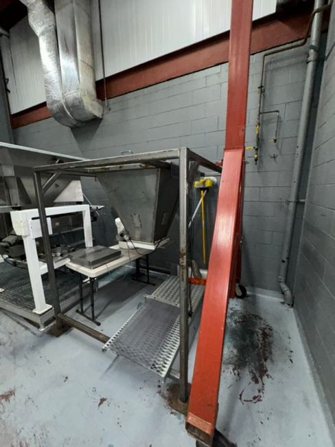 S/S Feed Hopper, Mounted on S/S Frame (RIGGING, LOADING, & SITE MANAGEMENT FEE: $200.00 USD)(LOCATED FINNELL DR. WEYMOUTH, MA)