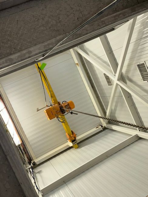 Harrington 2-Ton Hoist, Includes Hand Control, with 2-Ton Cross Beam, with S/S SuperSac Unloading Attachment (RIGGING, LOADING, & SITE MANAGEMENT FEE:  $2,500.00 USD)(LOCATED MOORE RD. WEYMOUTH, MA)