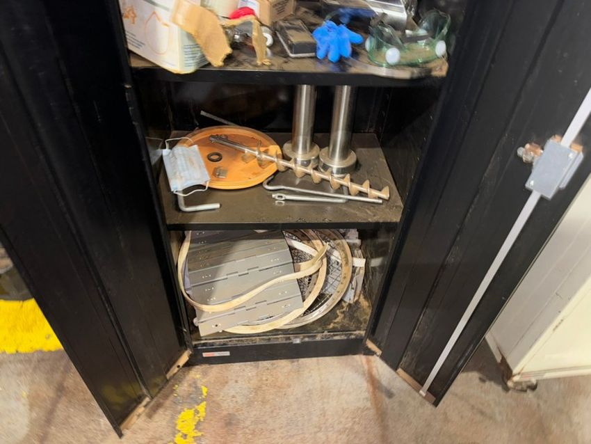 Image Fillers S/S Dual Auger Fillers, with (2) 1-1/2 hp Motors, with (2) Dayton AC Motor Speed Control, Mounted on S/S Frame, Includes (2) Double Door Cabinet with Spare Parts See Photos (PET ROOM)(RIGGING, LOADING, & SITE MANAGEMENT FEE: $800.00 USD)(LOCATED MOORE RD. WEYMOUTH, MA)