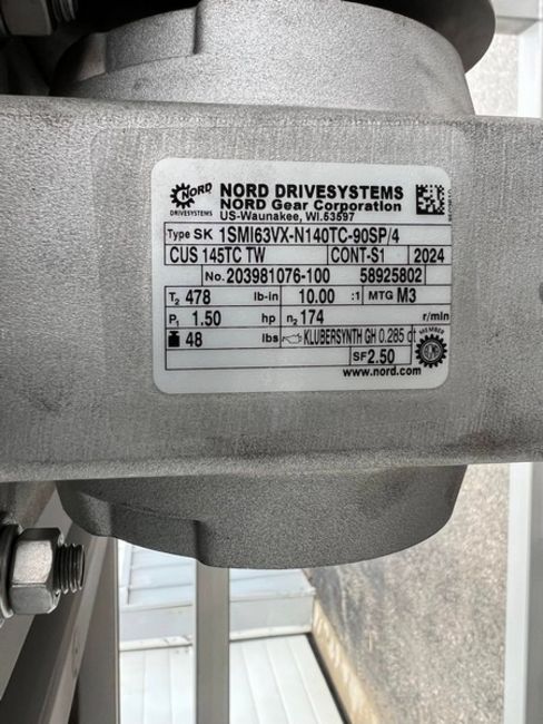 New S/S Construction Tumbler with (2) 4" Swivel Locking Casters, (2) 4" Rigid Casters, (8) Baffles Aprox. 48" L x 5" W x 2" H; (2) 28" Inlet/Outlet, Variable Speed, Adjustable Angle, 230/460 Volts, 1.5 hp, 1740 RPM, 3 Phase, Overall Dimensions Aprox. 79" L x 36" W x 72-1/2" H, Overall Inside Dimensions Aprox. 79" L x 32" Dia. (Unit #3712) (Locted Pulaski, WI) (Loading Fee $300)
