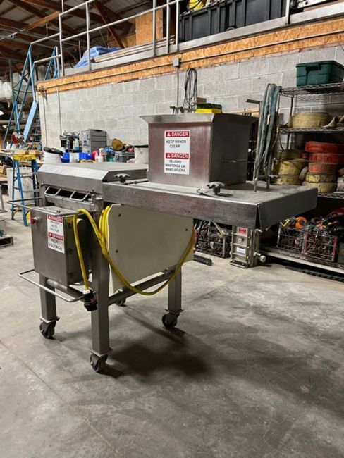 Aprox. 300 kg (661 lbs.) Capacity Per Minute Slide Curd Mill, S/N 125-1, 304 Stainless Frame, 4" Swivel Casters, Removal Guards, Drop Shaft, Conttrol Panel, Cutting blocks, 3 hp, 230/460 Volt, 1735 RPM, 3 Phse, Inside Dimensions Aprox. 15' L x 14" W x 16" Deep, Overall Dimensions Aprox. 64" L x 39" W x 60-1/2" H, Mfg. 2010 (Unit #3668) (Located Pulaski, WI) (Loading Fee $200)