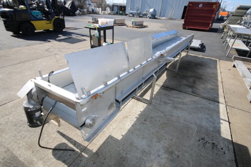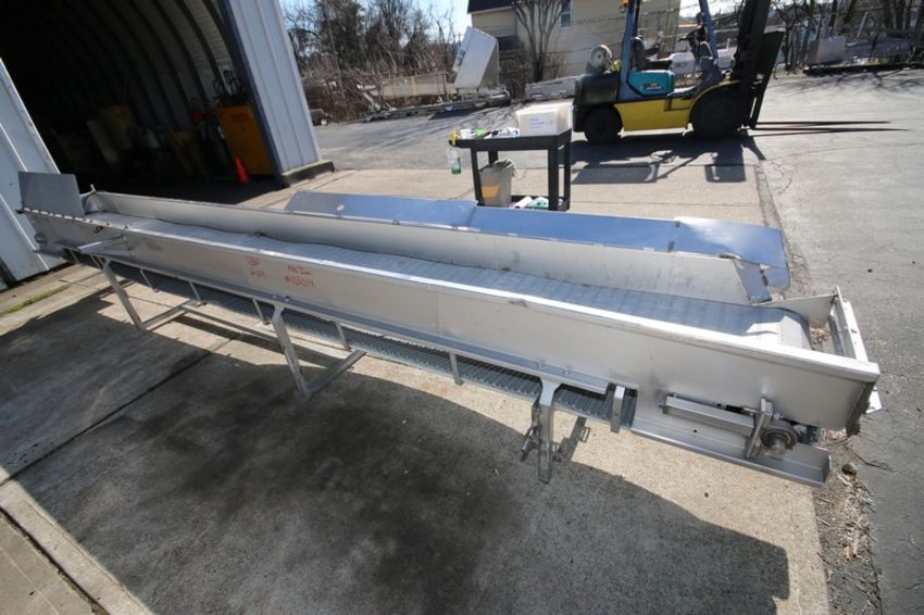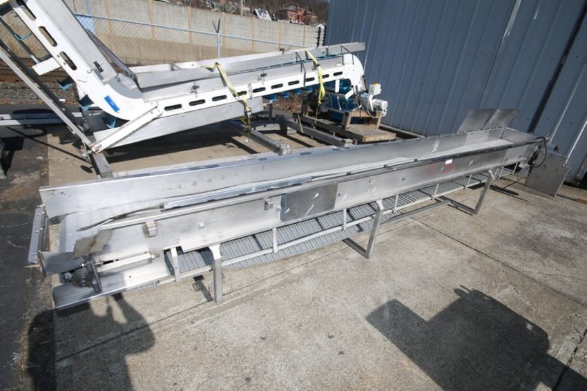 17' L x 23" H S/S Product Conveyor Section, with 18" W Rex Type Plastic Belt, 6" H Sides & Drive Motor (INV#103014) (Located @ the MDG Auction Showroom in Pgh., PA) (Loading, Handling and Site Management Fee $75)