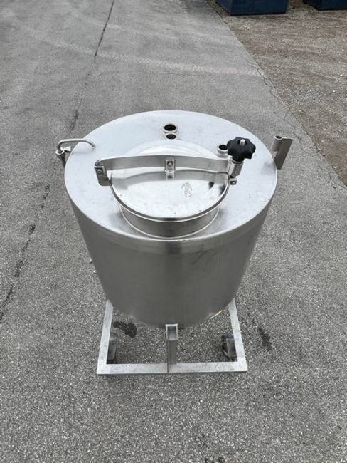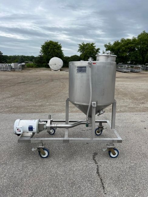 Aprox. 70 Gal. CIP Tank, S/S Frame, (4) Swivel Locking Casters, Baldor 150 GPM Pump, (1) 2-1/2" Outlet, 5 hp, 230/460 Volt, 34 RPM, 3 Phase, Overall Dimensions Aprox. 64-1/2" L x 36-1/4" W x 65" H (Unit #3778) (Located Pulaski, WI) (Loading Fee $400)