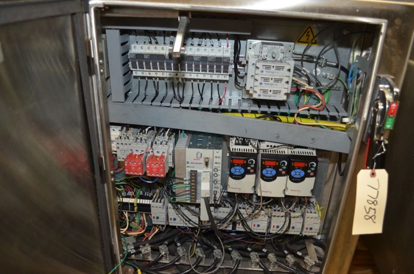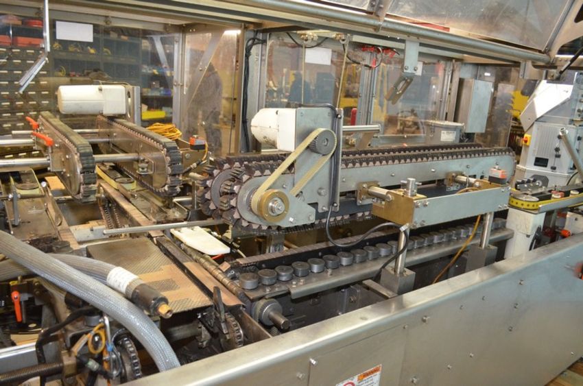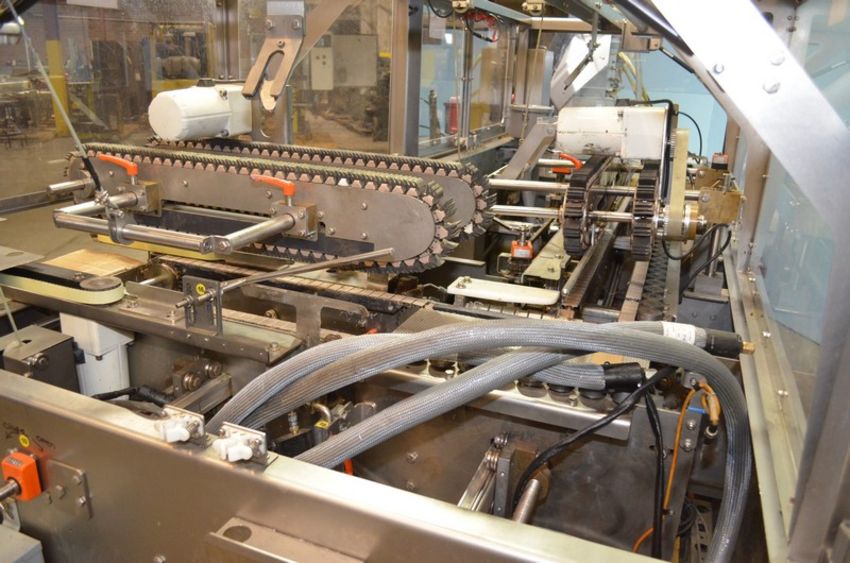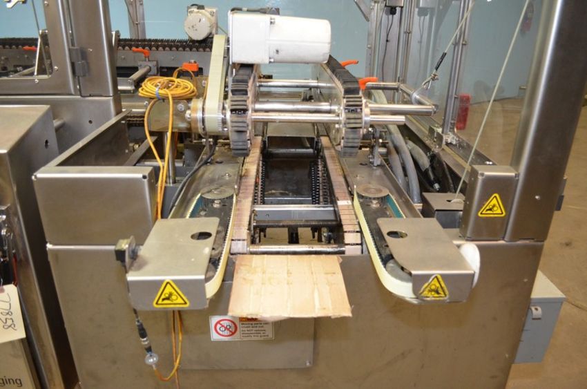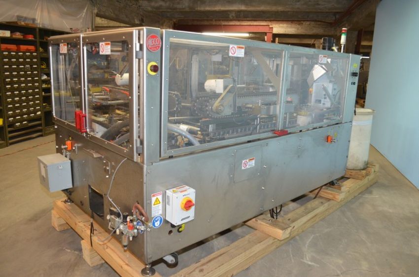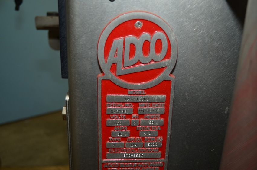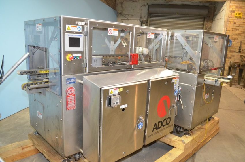 Adco Model RAC120WD High Speed Wash Down Tri-Seal Right Angle Carton Closer. Speeds up to 120 Cartons Per Minute. Carton Size Range: Length 100mm Minimum - 355mm Maximum. Width 75mm Minimum - 305mm Maximum . Depth 25mm Minimum - 125mm Maximum. Left to Right Configuration. Servo Driven 90 Degree Transfer Conveyor / Discharge. Stainless Steel Construction. Allen Bradley PanelView Plus 600 HMI. Graco InvisiPac Model HM25 Hot Melt Glue System with Plastic Glue Pellet Tub and Hoses. 460 V, 3 Ph, 60 Hz, 30 Amp. (L #77858) (Located Chicago, IL)