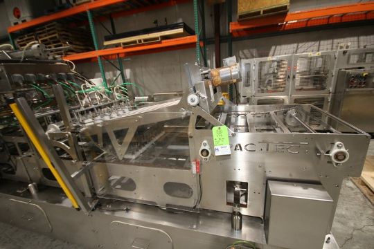 2008 PAC Tec 4 - Wide S/S Cup Filler, SN 2201, with 4 1/4" W Change Parts, Cup Inserter, Tamper Evident Sealer, Lid Inserter, Allen Bradley compact Logix L43 PLC with Touch Pad Display, Kinetix 6000 Servo Drive, (3) Powerflex 525 VFDs, 480V, (Aprox. Overall Dims. 176" Lx 75" W x 82" H), Also Includes (3) Filler Bowls, 2 3/4" W - 6-Wide Change Parts (INV#96657) (Located @ the MDG Auction Showroom in Pgh., PA)(Loading, Handling and Site Management Fee $ 300)