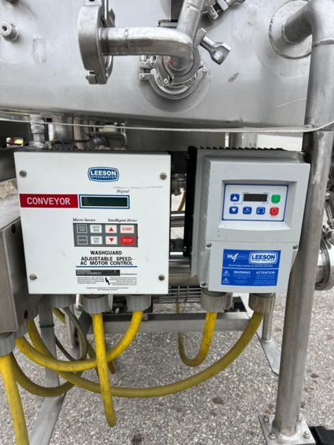 Smoke/Liquid Conveyor, Stainless Steel Construction with (2) Leeson Speed Masters, (1) Leeson Flux Vector, (6) Spray Jets, Aprox. 36" L x 12" W Chain Conveyor Top, On Swivel Casters, Blower Will Need Work or Replaced, 2 hp, 230/460 V, 1740 RPM 3 Phase Gator Pump, 1 hp, 230/460 V, 1740 RPM 3 Phase Gator Pump and Baldor .5 hp Pump, 230/460 V, 3450 RPM, 3 Phase, Overall Dimensions Aprox. 73" L x 55" W x 59" H (Unit #3728) (Located Pulaski, WI) (Loading Fee $250)
