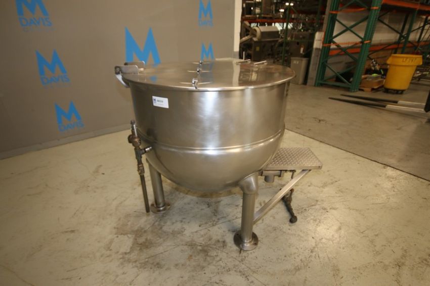Groen 150 Gallon S/S Jacketed Kettle, Model FT-150 SN 81076-2, with Hinged Lid, 3" Threaded Bottom Connection, S/S Legs, Max WP 25 psi @ 300° F (INV#88559)(Located @ the MDG Auction Showroom in Pgh., PA)(Skidding, Handling, Loading & Site Management Fee: $500)