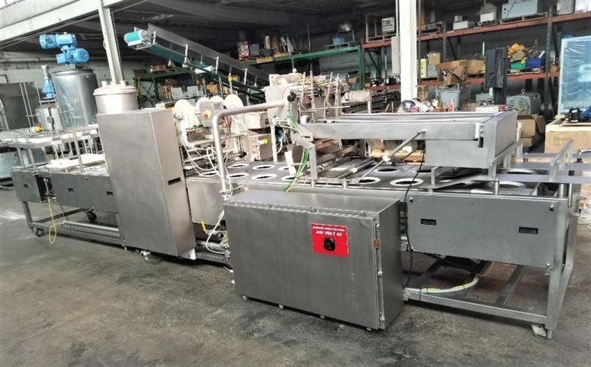 PMR (Packaging Machinery Resources) Dual Lane Continuous Container Filler, Sealer, Lidder, Model 1300, S/N 20070207, with All S/N Sanitary System, 440 Volt, Allen Bradley Micrologic Controller, Allen Bradley PowerFlex Speed Controller, Allen Bradley Panelview 300 Control Pad, Unit is on Casters, System is rated at Aprox. 30 Containers Per Minute, Current Container Diameter is Aprox. 6", -- This System Denests the Containers, Fills the Containers, Puts a Protective Seal on the Container and then Lids. (NOTE: This System will need to Ship Via Flatbed so please inquire for shipping costs) (Loading Fee $500) (Located Winter, WI)