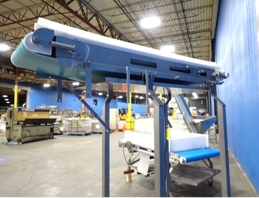 Dorner Aprox. 14" x 78" Solid Sanitary Blue Belt Conveyor, All S/S Frame, Portable on Locking Casters, Marathon S/S 1 hp Washdown Motor, 3/60/208-230/460 Volt, Infeed and Discharge Height 60", The Infeed Height Could Be Modified to Desired Height for Additional Cost. System could be lowered to desired infeed and discharge height for an additional fee. Unit last used in the food industry. (Crating Fee $250) (Please inquire for shipping rates) (Located Winter, WI)