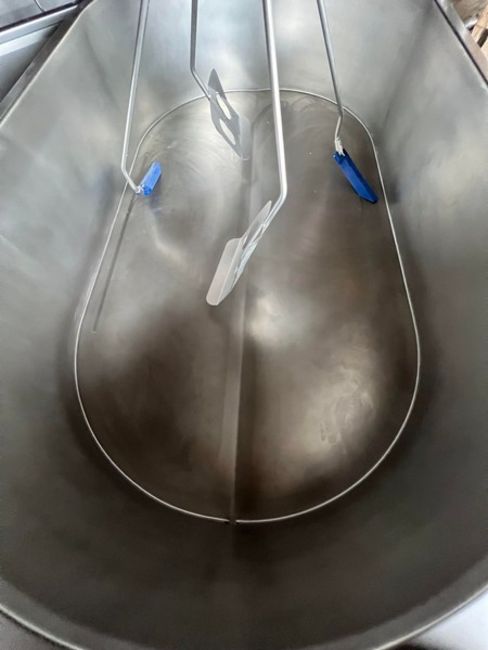 Aprox. 500 Gal. S/S Cheese Vat, Mfg. 2022 with Controls, Water Heat, 12 GA Interior, 14 GA Exterior, S/S Inside Frame, Dimple, Laser Welded Jacket for Durability and Highly Efficient, Only 4 Gal. of Water in Jacket, S/S Rail with Traveling Agitator, 3/4 hp to Travel to Stir, 230/460 Volt, 1710 RPM, 3 Phase with Puck Star, Milk Paddles, Cheddar Forkers, Tri-Clamp 2" Outlet, Aprox. Inside DImensions 104" L x 58" W x 23" D, Overall Dimensions Aprox. 116-1/2" L x 63" W x 77" H (Unit #3354) (Located Pulaski, WI) (NOTE: Must Be Removed by Flatbed - No Loading Fee)