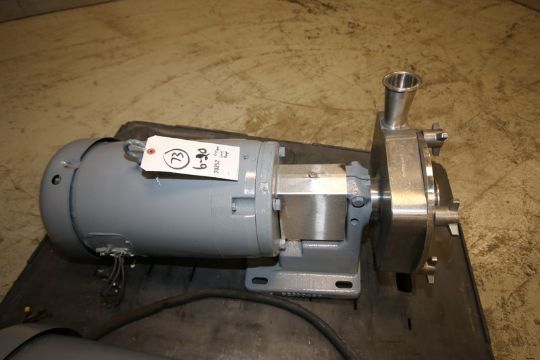 Fristam Aprox. 10 hp Centrifugal Pump, S/N FP17320203057, with Aprox. 2" x 3" Clamp Type Inlet/Outlet, with S/S Head (NOTE: Missing Motor Name Plate--See Photographs)(INV#70252) (LOCATED AT M. DAVIS GROUP AUCTION SHOWROOM--PITTSBURGH, PA) (Handling, Loading & Site Management Fee:$50.00)