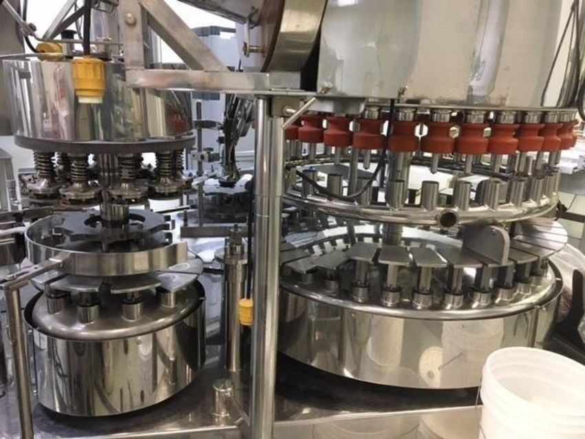 Fogg 36-10 Monoblock Fller Capper (chuck Sport cap 28mm). Speed of about 100-110 bpm.) (Located Huntingdon, Quebec, Canada) (Item #101A) (simple Loading Fee $ 1500)