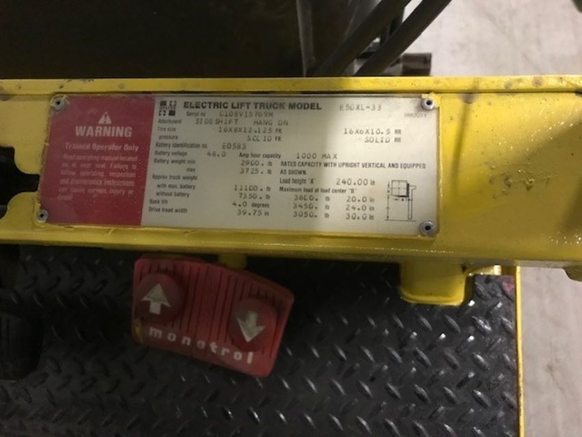 Hyster Electric Forklift, Model E50XL-33, S/N C108V15709M with Side Shift, 4-Stage Lift, 48-Volt with Spare Battery and Charger (Loading Fee $450) (Located Bismarck, ND)