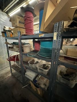 Contents of Shelving Units, Includes Sprockets, Plumbing, Bearings, Vibratory Feeder Bases, Plastic Conveyor Belts, Other Present Contents, Includes Shelving Units(RIGGING, LOADING, SITE MANAGEMENT FEE: $800.00 USD)( LOCATED IN MOORE RD. WEYMOUTH, MA)