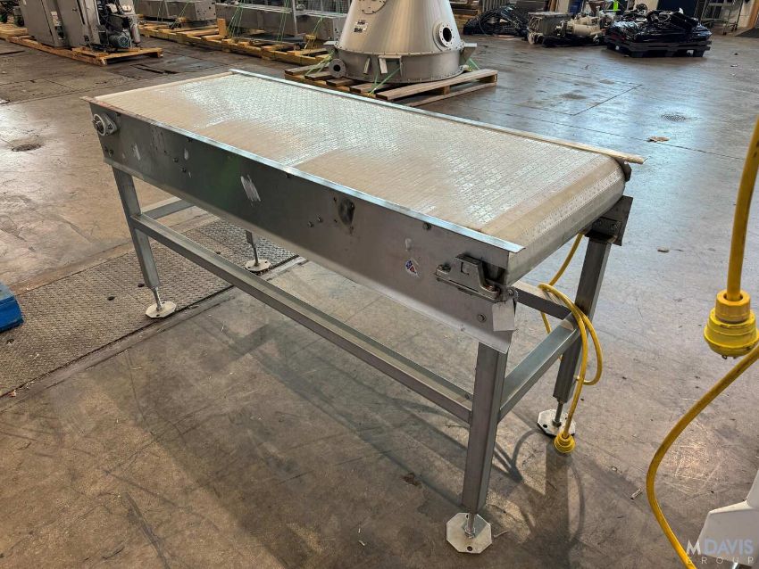 ADVANCED MANUFACTURING TECHNOLOGY STRAIGHT SECTION OF S/S CONVEYOR, BELT DIMS.: APROX. 67” L X 24” W X 39” H, MOUNTED ON S/S FRAME, (RIGGING, HANDLING, LOADING & SITE MGMT FEE: $250.00 USD)
