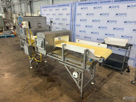 SAFELINE S/S METAL DETECTOR, WITH APROX. 19-1/2” W X 8-3/8” H (BELT TO TOP OF OPENING) X 11-1/4” DEEP PRODUCT OPENING, WITH APROX. 18” W X 94” L CONVEYOR BELT, (RIGGING, HANDLING, LOADING & SITE MGMT FEE: $350.00 USD)