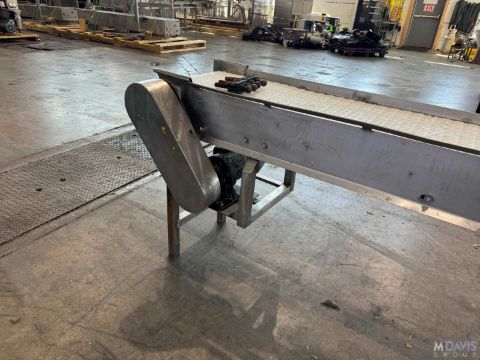 STRAIGHT SECTION OF S/S CONVEYOR, BELT DIMS.: APROX. 150” L X 12” W X 32” H (BELT TO GROUND), WITH DRIVE, MOUNTED ON S/S LEGS, (RIGGING, HANDLING, LOADING & SITE MGMT FEE: $350.00 USD)