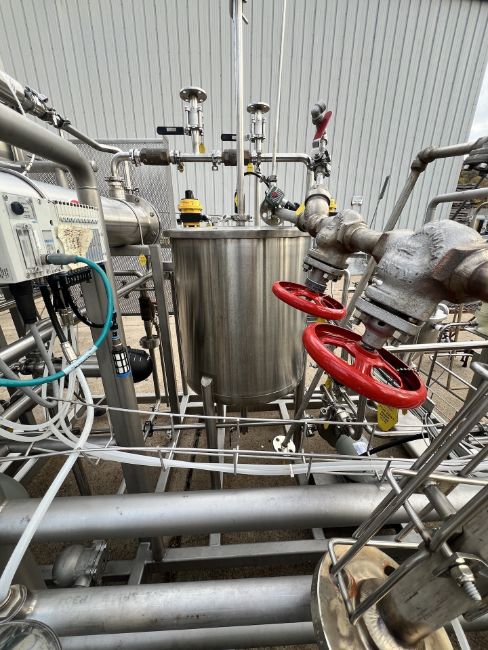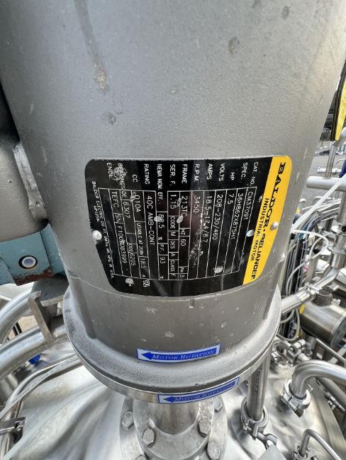2010 Sterling Process Engineering Enzyme Skid Includes Feldmeier Aprox. 200 Gal. Dome Top, Cone Bottom Jacketed S/S Processing Tank, SN E097909, 316L S/S, Includes SEW 7.5 hp / 1720 rpm Drive Motor, Bottom & Side Scrape Surface Agitator