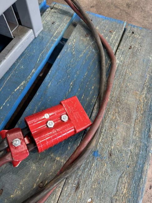 GNB FERRO CHARGER FORKLIFT BATTERY CHARGER, GTCII12-750S, S/N AR893900014, OUTPUT 24 VOLTS, WITH RED CONNECTION POINT & BOTTOM MOUNTED FORK POCKETS (SHIPPING DIMS.: APROX. 48” L X 40” W X 58” H; APROX. 500 LBS.; STRAPPED TO WOODEN PALLET AS PHOTOGRAPHED), (RIGGING, HANDLING, LOADING & SITE MGMT FEE: $200.00 USD)