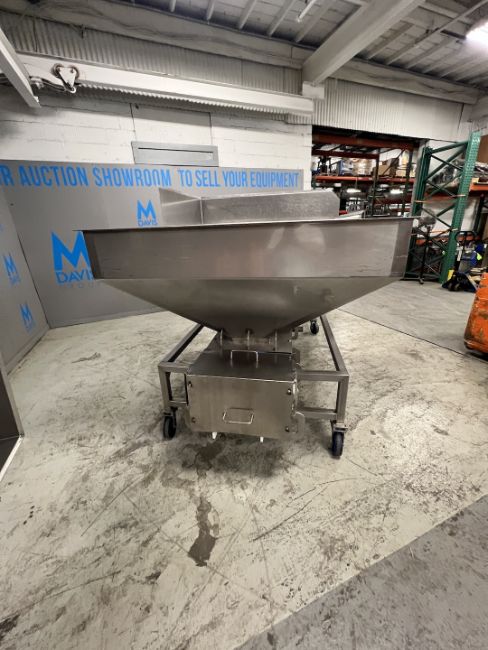 PRO ENGINEERING MANUFACTURING PRODUCT HOPPER WITH CLEATED INCLINE Z-CONVEYOR, MODEL 25181-2, HOPPER DIMENSIONS APPROX. 72 IN. L X 57 IN. W X 34 IN. D, 480 V, 3 PHASE (LOCATED IN PITTSBURGH, PA) (RIGGING AND LOADING FEE: $450.00)