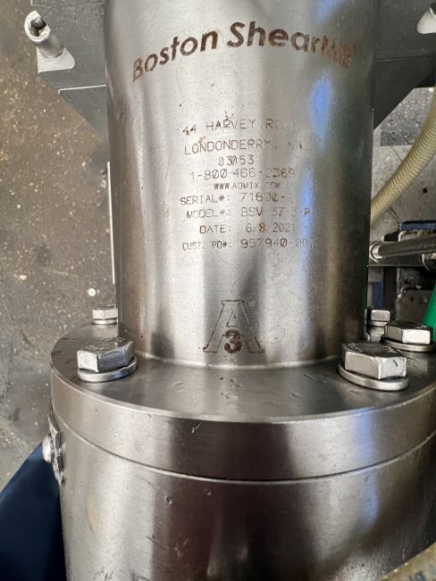2021 ADMIX BOSTON SHEARMILL, MODEL BSM37-3-P, S/N 71600-1, 40 HP LEESON MOTOR, 1730 RPM, MOUNTD ON S/S SKID WITH CASTERS, 208-230/460 V(LOCATED IN GREENBAY, WI) (RIGGING AND LOADING FEE: $200)