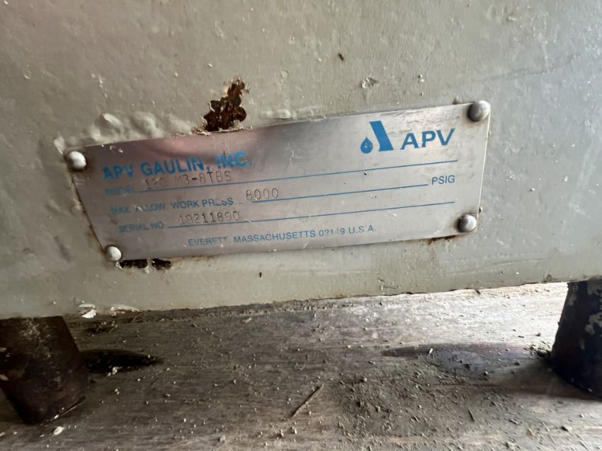 APV GAULIN HOMGENIZER, MODEL 120 M3-8TBS, S/N 19211890 (LOCATED IN OMAHA, NB) (CONTACT M DAVIS GROUP FOR RIGGING FEE)